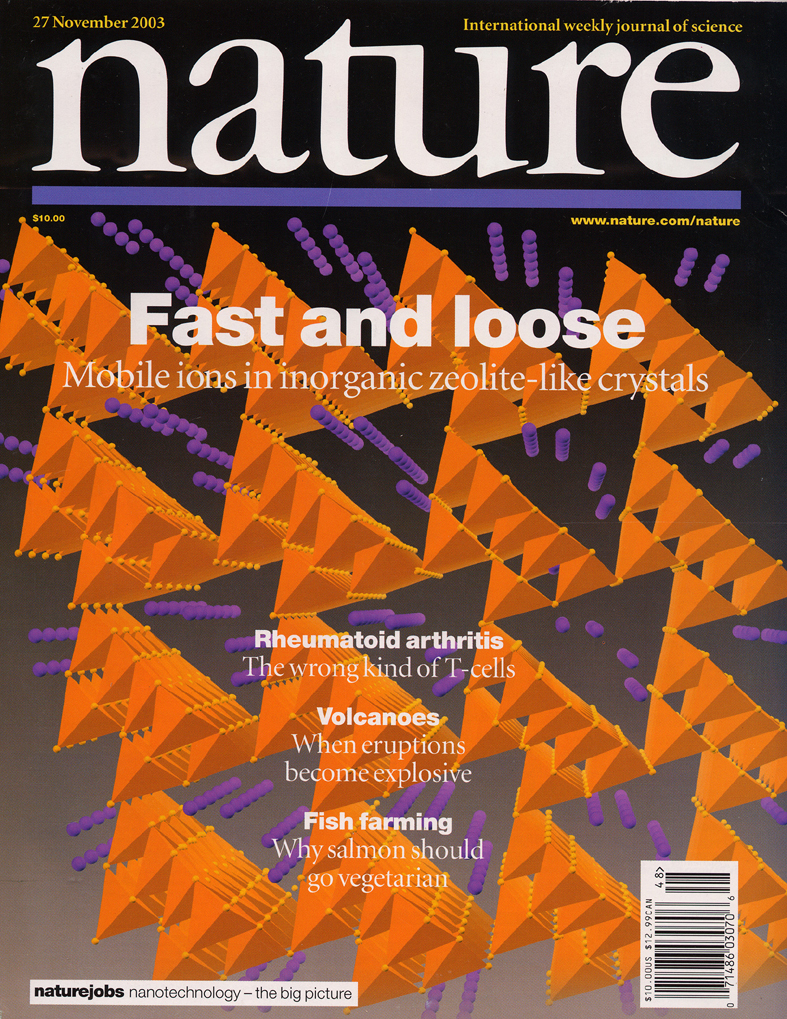Zheng, Nanfeng; Bu, Xianhui; Feng, Pingyun* "Synthetic design of crystalline inorganic chalcogenides exhibiting fast-ion conductivity" Nature 2003, 426, 428-432 (Cover Story).