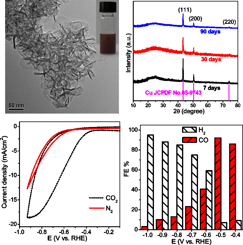 Lei Dai, Qing Qin, Pei Wang, Xiaojing Zhao, Chengyi Hu, Pengxin Liu, Ruixuan Qin, Mei Chen, Daohui Ou, Chaofa Xu, Shiguang Mo, Binghui Wu, Gang Fu, Peng Zhang and Nanfeng Zheng* "Ultrastable atomic copper nanosheets for selective electrochemical reduction of carbon dioxide" Sci. Adv. 2017, 3, e1701069. >> Fulltext Link