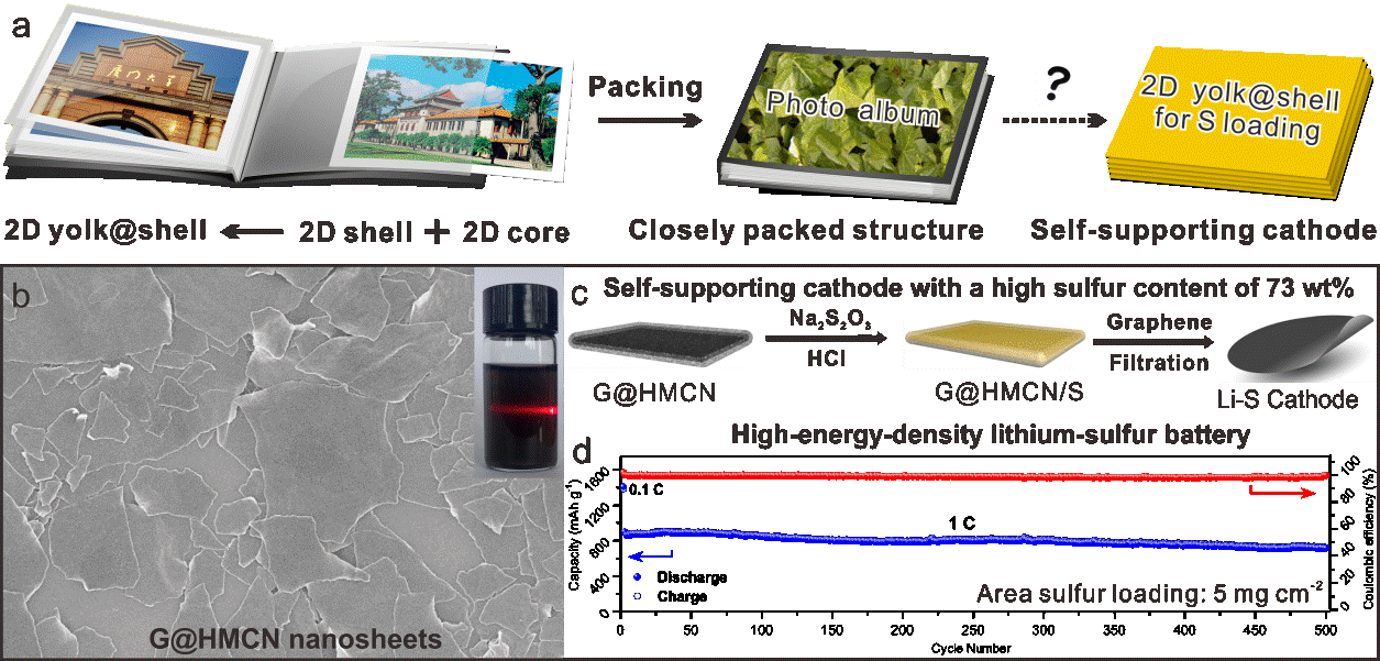 Fei Pei, Lele Lin, Daohui Ou, Zongmin Zheng, Shiguang Mo, Xiaoliang Fang,* Nanfeng Zheng* "Self-supporting sulfur cathodes enabled by two-dimensional carbon yolk-shell nanosheets for high-energy-density lithium-sulfur batteries" Nature. Commun. 2017, 8, 482. >> Fulltext Link
