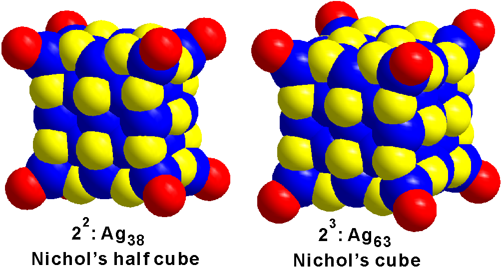 Boon K. Teo,* Huayan Yang, Juanzhu Yan, Nanfeng Zheng* "Supercubes, Supersquares, and Superrods of Face-Centered Cubes (FCC): Atomic and Electronic Requirements of [Mm(SR)l(PR′3)8]q Nanoclusters (M = Coinage Metals) and Their Implications with Respect to Nucleation and Growth of FCC Metals" Inorg. Chem. 2017, 56, 11470-11479. >> Fulltext Link