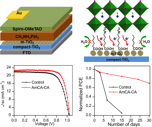 Ruihao Chen, Jing Cao, Youyunqi Wu, Xiaojing Jing, Binghui Wu,* Nanfeng Zheng* "Improving Efficiency and Stability of Perovskite Solar Cells by Modifying Mesoporous TiO2–Perovskite Interfaces with Both Aminocaproic and Caproic acids" Adv. Mater. Interfaces 2017, 4, 1700897. >> Fulltext Link