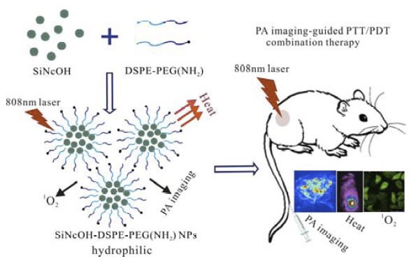 Jing-Ping Wei, Xiao-Lan Chen,* Xiao-Yong Wang, Jing-Chao Li, Sai-Ge Shi, Gang Liu,* Nan-Feng Zheng* "Polyethylene glycol phospholipids encapsulated silicon 2,3-naphthalocyanine dihydroxide nanoparticles (SiNcOH-DSPE-PEG(NH2) NPs) for single NIR laser induced cancer combination therapy" Chinese Chem. Lett. 2017, 28, 1290-1299. >> Fulltext Link