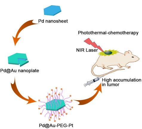 Saige Shi, Xiaolan Chen,* Jingping Wei, Yizhuan Huang, Jian Weng,* and Nanfeng Zheng* "Platinum (IV) Prodrug Conjugated Pd@Au Nanoplates for Chemotherapy and Photothermal therapy" Nanoscale, 2016, 8, 5706-5713. >>Fulltext Link