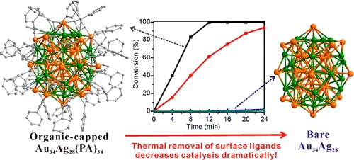 Yu Wang, Xian-Kai Wan, Liting Ren, Haifeng Su, Gang Li, Sami Malola, Shuichao Lin, Zichao Tang, Hannu Hakkinen, Boon K Teo, Quan-Ming Wang,* Nanfeng Zheng* "Atomically Precise Alkynyl-Protected Metal Nanoclusters as a Model Catalyst: Observation of Promoting Effect of Surface Ligands on Catalysis by Metal Nanoparticles" J. Am. Chem. Soc. 2016, 138, 3278-3281. >>Fulltext Link